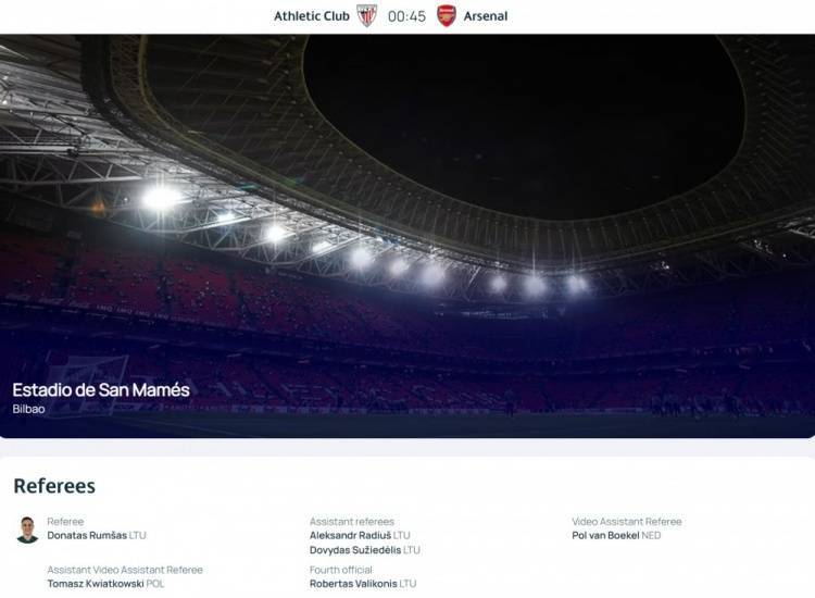 欧冠毕巴vs阿森纳裁判:立陶宛籍裁判鲁姆萨斯执法